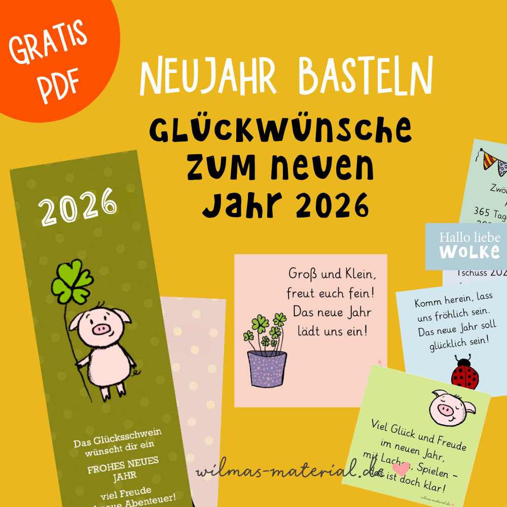 Du erhältst von mir 2 Lesezeichen und 6 Kärtchen für deine Neujahrsgrüße im Kindergarten zum Jahr 2026